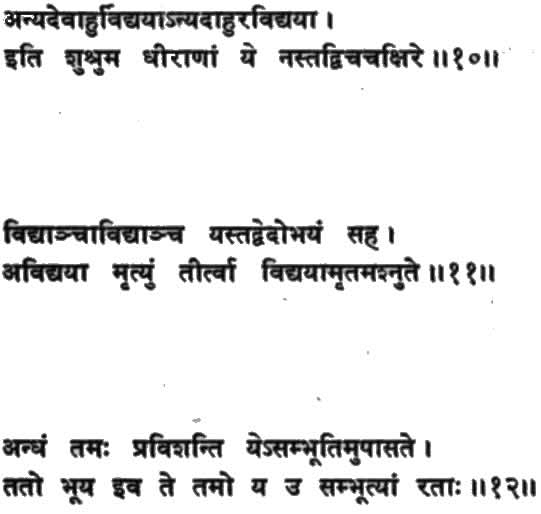 anyad in the verse that follows. The ordinary rendering, "Knowledge has one result, Ignorance another", would be an obvious commonplace announced with an exaggerated pompousness, adding nothing to the thought and without any place in the sequence of the ideas.