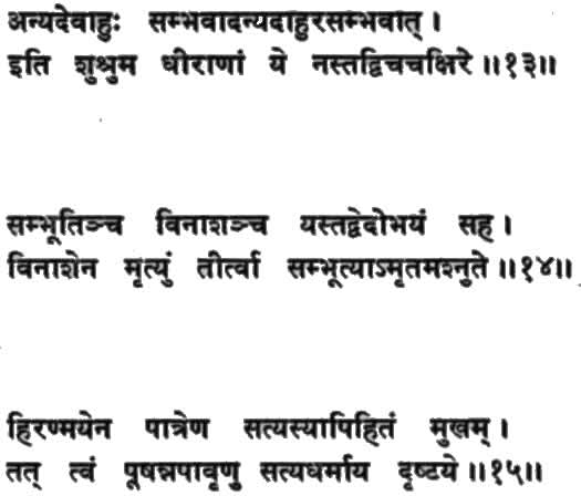 12. Into a blind darkness they enter who follow after the Non-Birth, they as if into a greater darkness who devote themselves to the Birth alone.