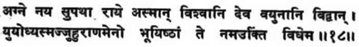 18. O god Agni, knowing all things that are manifested, lead us by the good path to the felicity; remove from us the devious attraction of sin.1