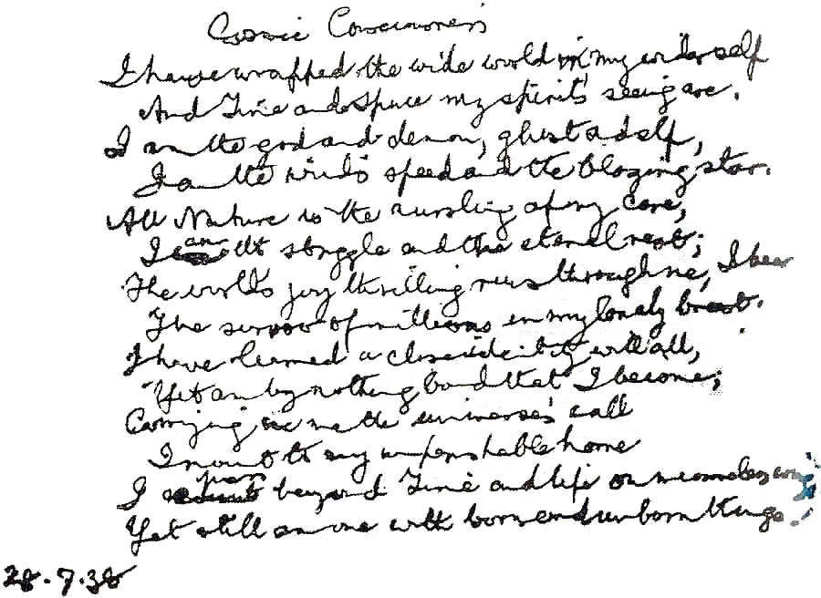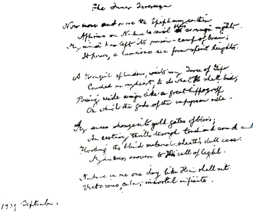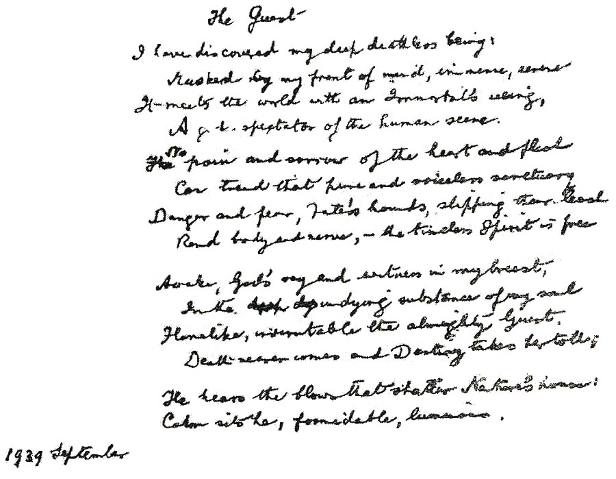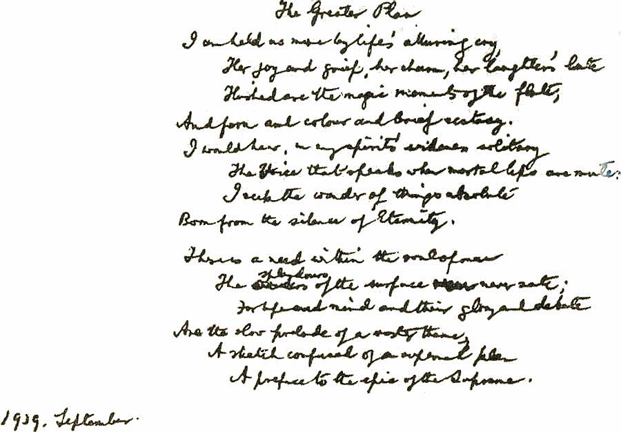 I HOUSED within my heart the life of things, I shared the joy that in creation sings And drank its sorrow like a poignant wine;