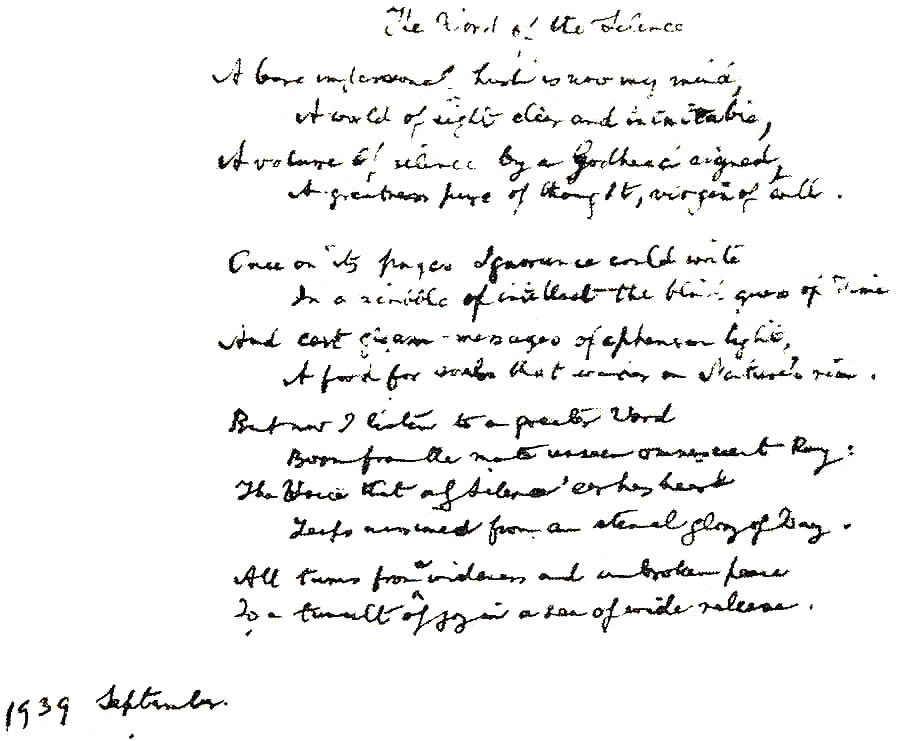 The unknown beginning and the voiceless end On an incommunicable summit reigned,