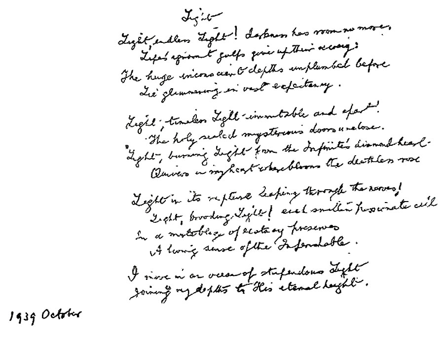 Are heard the heart-beats of the Infinite. A fathomless sealed astonishment of Light.