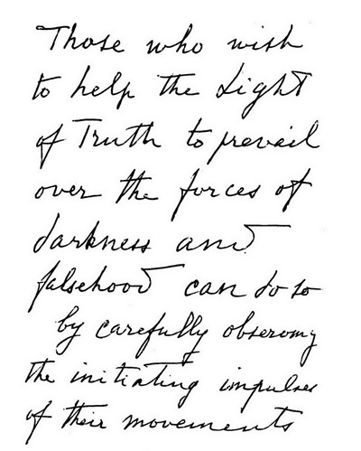 Those who wish to help the Light of Truth to prevail over the forces of darkness and falsehood can do so by carefully observing the initiating impulses of their movements and actions, and discriminate between those that come from the Truth and those that come from the falsehood in order to obey the first and to refuse or reject the others.