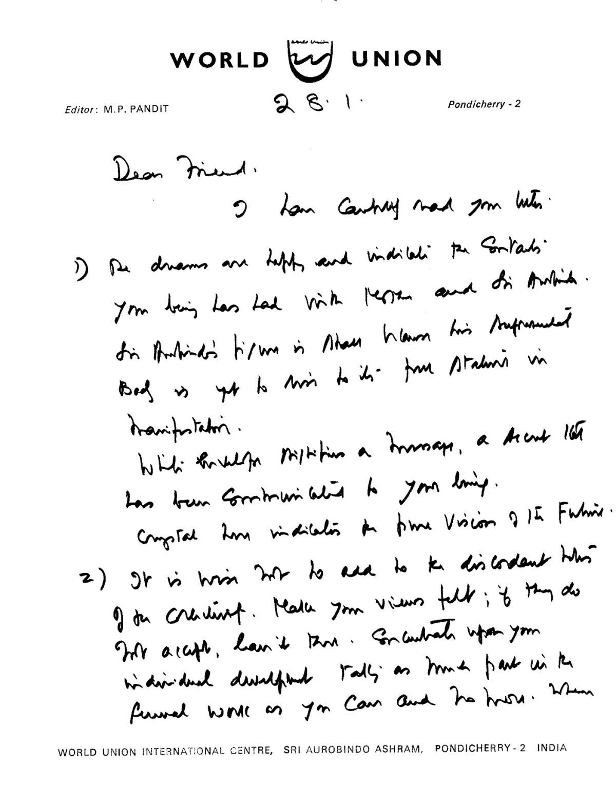 the contact your being has had with Mother and Sri Aurobindo. Sri Aurobindo’s figure is small because his