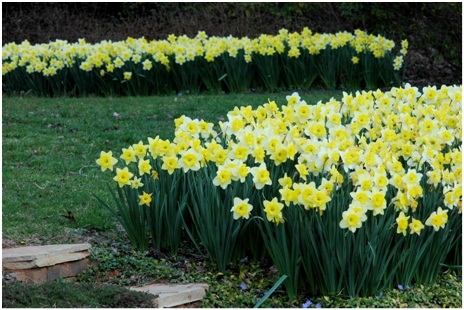 In "Mother's Garden" in Georgia, U.S. A. the site of 10,000 to 20,000 daffodils in a great range of colour is truly breathtaking.