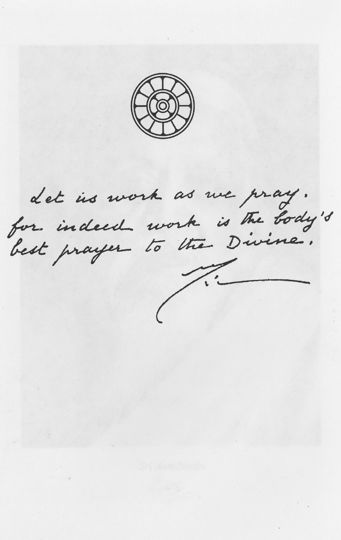 Keeping this goal before us, let us tread the path of work armoured with patience, perseverance and an unfailing receptivity to the Grace.