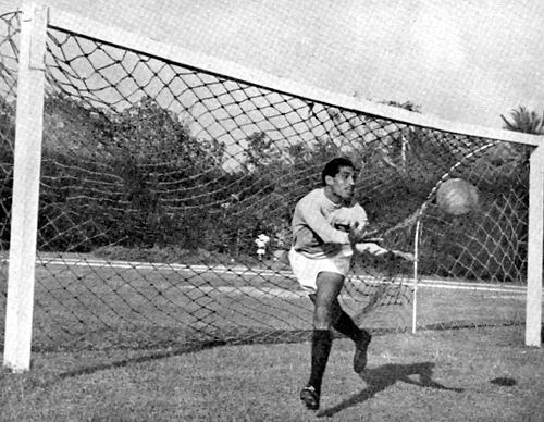 Thangaraj the Indian Olympic goal keeper on the Ashram Ground |
