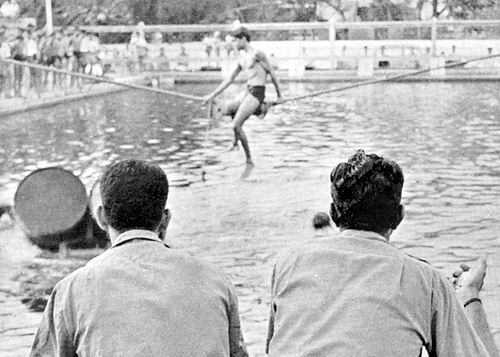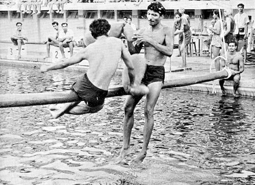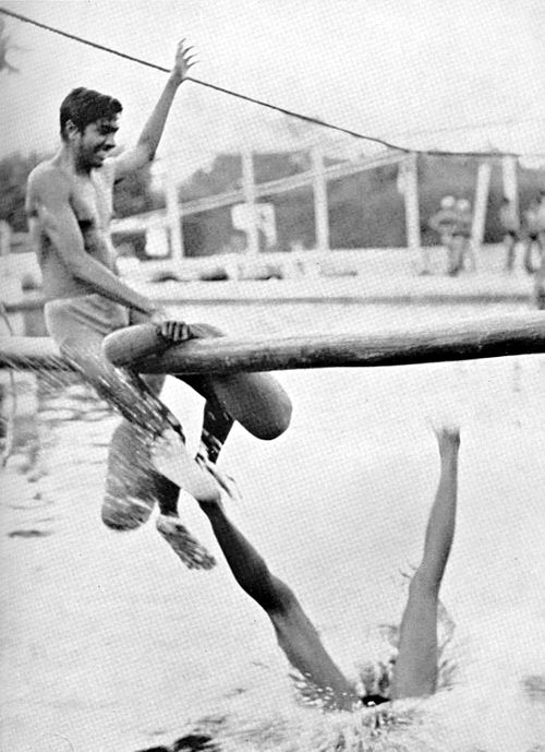 Le Groupe A a été divisé en 10 sections, tandis que les autres groupes réunis, ont formé 6 sections. Les épreuves pour toutes ces sections comprenaient les nages olympiques habituelles : nage libre, brasse, nage sur le dos et nage papillon, mais avec des distances différentes suivant le groupe. Après cela, nous avons eu les épreuves de plongeon, à partir du tremplin |