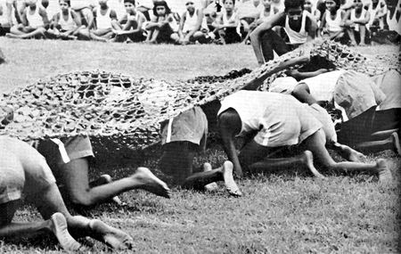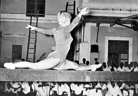 Shanta (Miss Ilona Eckgold), gymnastic coach from Germany, with her trainees