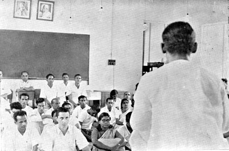 visite au Centre d'éducation. Il assista le soir aux activités sportives. Ensuite eut lieu une réunion avec les professeurs et les étudiants, où il fut discuté des buts et objets de l'éducation et des idéaux poursuivis par le Centre. Le lendemain matin, M. Saiyidain visita quelques classes, notamment les classes de Libre progrès où les étudiants ont la responsabilité d'organiser leur propre travail. M. Saiyidain était accompagné de M. H. S. S. Laurence de l'Institut d'État de l'éducation, à Madras; tous deux ont manifesté le plus vif intérêt à notre travail.