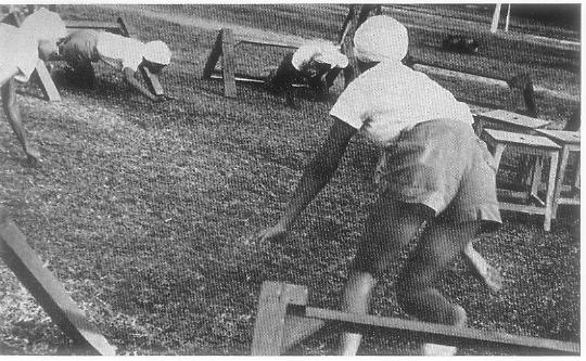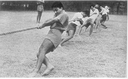 Olympic Gymnastics (6 events). Gymnastic Tests (5 events) and Weight Lifting Tests (3 events each for Heavy and Light weight lifters). At the end of the athletic competitions, each time, were the relay races and tug-of-war and interesting novelty races for both athletics and aquatics. From the 1st June we have gone back to normal group activities which will continue till the end of August. But meanwhile there are the 'minimum physical efficiency tests' of which we shall write in our next number.