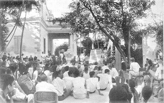 La séance commença par la lecture des réponses de la Mère à quatre questions qu'elle avait posées pour ce colloque. Cinq membres parlèrent ensuite sur le sujet. Lecture fut faite enfin de quelques poèmes sur la Mère et d'extraits des œuvres de Sri Aurobindo et de la Mère.