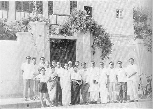 Les directeurs des Écoles centrales à la porte de l'Ashram |