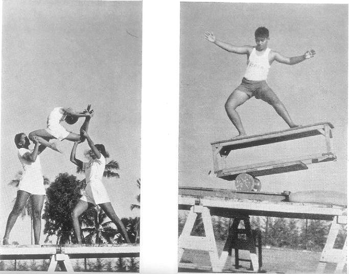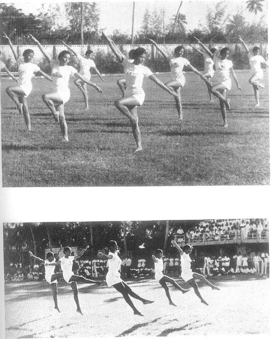aux exercices de masse était de 226. Après la démonstration et jusqu'à la rentrée de l'École, eurent lieu les sorties et pique-niques habituels. A partir du 16 décembre 1969, les nouveaux groupes se composent comme suit : A5—30 (15 g. et 15 f.); A4—30 (n g. et 19 f.) ; A3—30 (i9 g. et il f.); A2—40 (26 g. et 14 f.) ; A1—40 (25 g. et 15 f.); B2 — 46 (26 g. et 20 f.) ; B1 — 45 (23 g. et 22 f.) ; C—67 filles ; D — 92 hommes ; E — 93 filles ; F — 81 hommes ; G — 39 dames ; H — 82 hommes ; Hors-groupe — 200 (140 h. et 60 d.) ; Nouveau groupe— 144 (81 g. et 63 f.) ; Capitaines — 65 (38 h. et 27 d.) ; Total — 1,124 (659 et 465). Au Judo il y a 112 participants à l'entraînement, et au Jiu-jitsu 50. Les prix pour les compétitions des 2e et 3e saisons ont été distribués le 16 décembre 1969. L'Étoile des Sports pour 1969 a été attribuée à : 1 — Debdas Chatterjee 2 — Namita Manna.