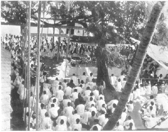 par Nolini à l'Oriya Nilayam. Près de soixante ouvriers et jeunes gens de divers centres d'Orissa sont restés pendant dix jours. Des conférences leur ont été faites sur les aspects divers de l'enseignement de la Mère et du Maître et sur les activités de l'Ashram par : Nirod, Pranab, Kireet, Jugal, Sisir, Ravindra, A. B. Patel, Kishor Gandhi, Jay Smith, Madhav Pandit, Prapatti et Ramkrishna Das. La musique de la Mère et des enregistrements de la Mère ont clôturé le rassemblement le 5 juin. La Mère a donné ses bénédictions à la proposition de tenir le prochain rassemblement cette année du 8 au 18 octobre.