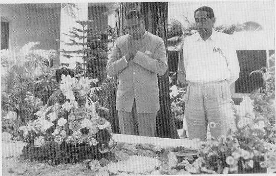 Dr. V.K.R.V. Rao, the Minister of Education, Government of India, at the Samadhi |