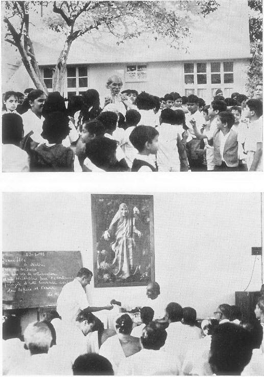 Mother's School, Delhi, on a visit Visite à l'Ashram des élèves de École de l;a Mère, de Delhi |
