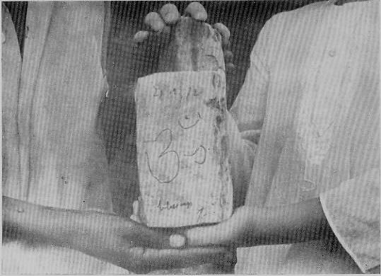 Stone with the Mother's Blessings for Matrimandir Foundation, 21.2.72.