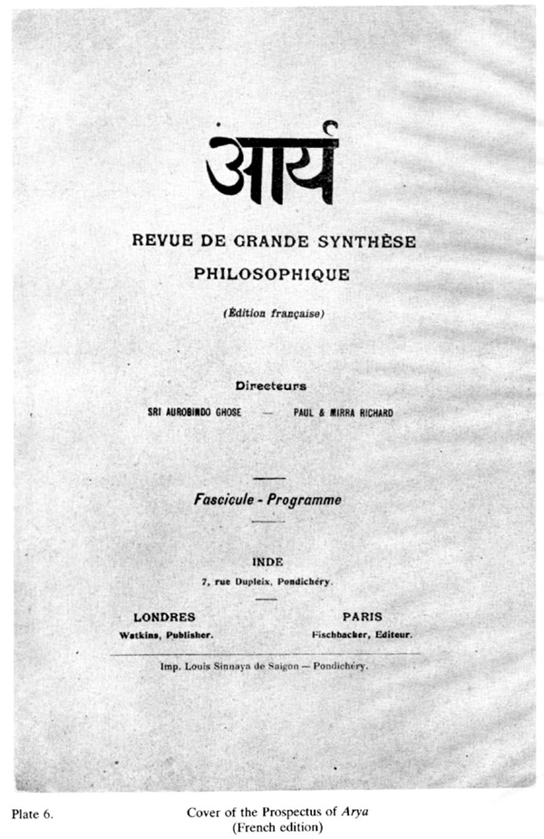 Just at that time Paul Richard came back to Pondicherry and started the publication of the monthly "Arya" which Sri Aurobindo edited and through which he expounded his new Yoga based on his interpretation of the Vedas. He published in it his translation of the Isavasya Upanishad and his translations of portions from the Rg |