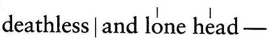 Further modulations have been introduced in this poem — a greater use is made of tetra syllabic feet such as paeons, epitrites,di-iambs, double trochees, ionics and, once only, the antispast — and in a few places the foot of three long syllables (molossus) has been used, and in others a foot extending to five syllables (e.g., Delivered from grief). Scan: