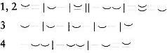 Page – 554 substitution of a long for a short syllable either in the first or the last syllable of an amphibrach, at will, thus substituting a bacchius or an antibacchius, (3) the substitution of a dactyl for an initial amphibrach, (4) the substitution of a long instead of short syllable in the middle of the final anapaest, both this and the ultimate syllable to be in that case stressed in reading, e.g.,