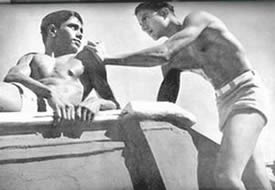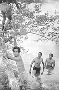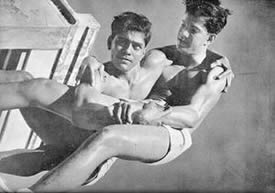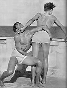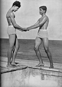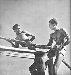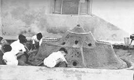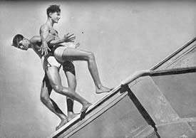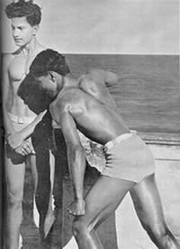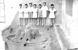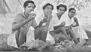 properly fenced and maintained, the beach itself has become clean and it is now the most popular swimming spot in Pondicherry, not only for our own members, but also for a number of local people. Unfortunately, the sea front at Pondicherry is not quite safe for indifferent swimmers. There are at times strong cross currents and what is worse, a number of pits formed by the eddies, very near the edge of the sea. These pits are danger spots for the unwary and for the beginner, and sometimes even for the more experienced swimmer who can get caught in the eddy. There have been no accidents but a number of close cases. We have therefore had to organise the swimming and arrange for life-guards and life-belts. Another allied aspect of aquatics which had strangely enough become popular this quarter, is the building of sand castles by the little ones. They have shown ingenuity and constructive capacity in their castles. We publish elsewhere in this number some photographs of thei4r efforts. There was one other event in this quarter to which we had all looked forward the whole year. It was the March Past in formation of all the groups in their drill uniform past Sri Aurobindo and the Mother on the 24th April, the Darshan Day. This day therefore is a memorable one for the J.S.A.S.A., for on that day as a group, it makes its obeisance and plays homage to our dear Lord and our Sweet Mother. The groups were arranged as follows. First were the two standard bearers followed by the girls. Behind them came the three men groups then the boys group followed by the 10-14 year group with the very little ones bringing up the rear. It was indeed an impressive sight with each group in its own coloured uniform marching past in quiet disciplined formation yet expressing all the joy, happiness and devotion that is usually manifested at a Darshan. In the illustrated section of this number will be found photographs of all the events mentioned above. But in addition there is also a series of poses by two of our members illustrating the theme "Spirit and Matter". This set of poses has been sent for exhibition to the Lingiad World Sports and a large sized flag of the J.S.A.S.A. We hope the display will arouse interest in visitors to the exhibition.