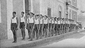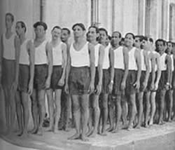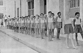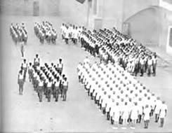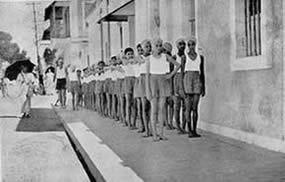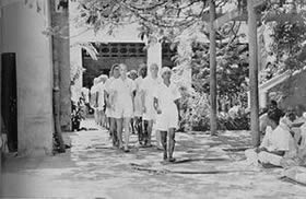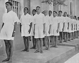 Our concentrations take place every day at 7 o' clock in the evening at the end of the exercises on the playground. All those who have taken part in the marching which terminates the exercises, assemble in groups, almost in military pattern, to form three sides of a square facing the fourth side which is represented by the Mother, all alone, standing against a wall. In the middle of the square stands the director of our Physical Education who is responsible not only for the organisation but also for the management of the whole affair. We remain like this, standing to attention, in complete silence for about 8 to 10 minutes during which time each one concentrates his best in an offering of his being and of his activities to the Divine work, to the future realisation for which we are preparing. There are no set words nor even ideas expressed in any precise form, so that each one finds in himself the most sincere and spontaneous expression of his aspiration.