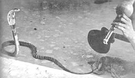 Cobra trouvé et capturé dans une des fermes de l'ashram par un jardinier improvisé charmeur de serpent. |