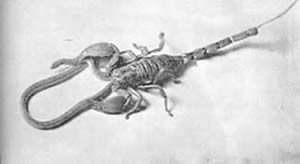 Combat mortel entre un grand scorpion palmiste et un serpent Tous deux périrent dans la bataille. |