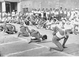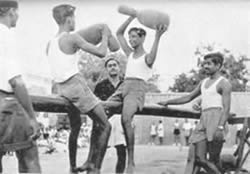 This length of time was necessary because of the large number of subgroups and also because we could have only about five events every day. These subgroups were composed of members having more or less an equal capacity in athletics and each subgroup" had a programme of events suited to the ability of its members. The daily programme commenced at 5.15 and ended at 6.30 p.m.