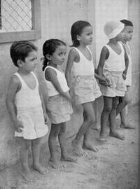 Altogether there were 33 subgroups made up as follows: 5 in group A.I (children upto 6 years); 4 in group A. 2 (children from 6 to 10 years); 7 in group B (children from 10 to 14 years); 6 in group C (boys from 14 to 18 years); 7 in group E (girls and ladies above 14 years); 4 in group D (boys and men above 18 years).