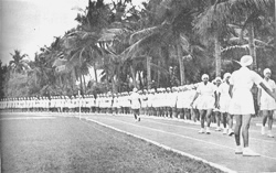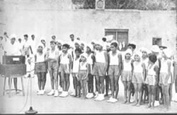 dans la ligne de notre programme du 2 décembre. Ils semblent avoir été très favorablement impressionnés par ce qu'ils ont vu ici et, comme ils sont destinés à être des instructeurs d'éducation physique dans diverses parties de l'Inde, nous espérons que le pays tout entier bénéficiera de l'impression qu'ils emportent de notre organisation et de nos méthodes. Pour finir, nous en venons à nos tournois et championnats. Ce trimestre est celui des jeux sportifs; aussi les championnats de tennis, tennis de table, basket-ball, hand-ball, volley-ball, football et cricket ont été disputés comme de coutume, ainsi que ceux des jeux mineurs pour les petits. Ces tournois ne sont pas encore tous terminés et certains sont reportés au trimestre suivant. Comme d'habitude, les jeux furent très populaires et très suivis. La rivalité était vive et le taux de l'amélioration dans quelques-uns s'est maintenu. Le plus d'intérêt fut témoigné au tennis et au basket-ball Cette année enfin nous avons eu nos matchs de cricket sur notre propre terrain. En conformité avec notre nouveau programme, le groupe A2 et les groupes B, c'est-à-dire tous les enfants sauf les tout-petits, ont commencé le tennis. Ils sont très enthousiastes et déjà quelques joueurs pleins de promesses se sont révélés, qui sont d'un bon augure pour l'avenir de ce jeu ici.