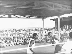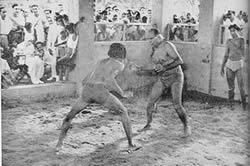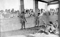 Exhibition at the Ashram by wrestlers from the Gujerati team of the Indian Olympics |