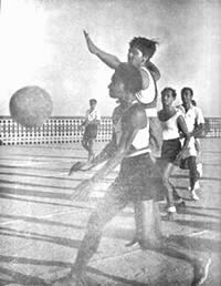 saw here and as they are all destined to be teachers of Physical Education in various parts of India, we hope that the impression they have carried with them of our organisation and method will be of benefit to the whole country. In conclusion we come to our games tournaments. This quarter is for games and we had the usual tennis, table-tennis, basket-ball, hand-ball and volley-ball, football and cricket tournaments with minor games for the little ones. These tournaments are not yet all completed and they will go on to the next quarter. As usual, the games were very popular and attracted many entries. Competition was keen and the rate of improvement in some games has been maintained. Tennis and basket-ball were the most popular, and this year, we are having a cricket tournament on our own grounds at last. According to the new programme, the A2 and B groups, that is, all the little ones, except the babies, have started tennis training. They are very enthusiastic and already some players of promise have been found which augurs well for the future of this game here.