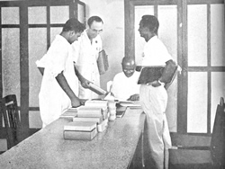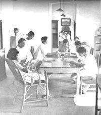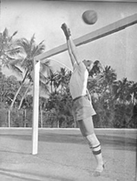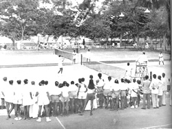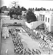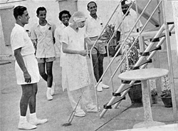 Nous eûmes un intermède agréable avec la visite des équipes d'athlétisme de l'Université du Gujerat et de Vishva Bharati. Ces équipes rentraient des championnats inter-universitaires qui avaient eu lieu à Madras, et une rencontre triangulaire fut organisée sur notre terrain. Le programme occupa deux soirées et fut plein d'intérêt; nos jeunes gens étaient en forme et nous en récoltâmes les honneurs. Plusieurs des records J. S. A. S. A. furent battus. On trouvera quelques photographies dans ce bulletin.