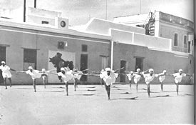 Nous avons inauguré ce trimestre notre section d'escrime. Nous avons reçu un équipement complet pour le fleuret et pour l'épée, et nous avons parmi nous un bon instructeur. Un certain nombre de jeunes gens et jeunes filles des différents groupes s'y sont mis avec entrain et progressent de façon satisfaisante. Nous pourrons avoir un championnat d'escrime à la prochaine saison des sports de combat.