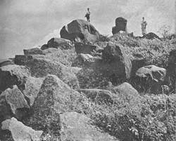 Hill from which the granite is taken for the construction of our sea-wall. |