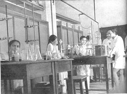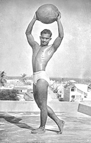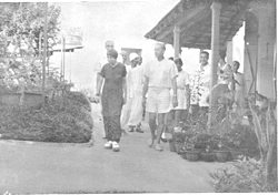 gymnastique, nous assistâmes cette année à quelques assauts d'escrime, de boxe, de lutte, à des levers de poids et d'haltères et à des tours de force. Une autre innovation fut celle de l'équilibre sur la corde raide et sur le rouleau. La démonstration des postures (âsanas) de Hatha-Yoga fut suivie avec beaucoup d'attention, spécialement par les invités. Cette année nous avions invité un grand nombre de personnes de la ville qui avaient exprimé le désir d'assister à ces séances. Il en résulta qu'il fut très difficile de trouver des places en nombre suffisant pour tout le monde et que le terrain était plein à déborder. Avec le 2 décembre, nous terminons ce trimestre; mais avant de clore ce rapport, nous dirons quelques mots d'un travail important entrepris pour protéger nos courts de tennis contre l'action destructrice de la mer. Depuis assez longtemps l'érosion due à la mer menaçait de façon certaine et prononcée notre terrain. Nous avions pris certaines mesures pour l'enrayer, mais cette année, peut-être à cause des pluies exceptionnellement abondantes, la mer a progressé soudain et miné le sol presque jusqu'à notre clôture. La plage, que nous utilisions si heureusement pour les bains de mer, avait disparu et nos terrains de tennis et de basket-ball étaient sérieusement menacés. Nous avons dû immédiatement bâtir un long mur solide pour les protéger et, dans ce but, nous avons foncé en bordure de la mer un grand nombre de puits jointifs profonds, que nous avons ensuite remplis de béton. Ces puits furent alors réunis par une dalle de béton et les intervalles remplis aussi par du béton. De cette façon, nous avons construit un mur massif solidement fondé, appuyé au rivage et protégé du côté de la mer par un tablier de gros blocs de granit. Nous montrons des photographies de la colline d'où ces blocs proviennent. Nous espérons que ce travail arrêtera tout progression future de la mer dans notre direction. |