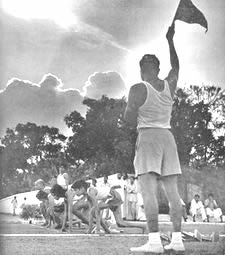 CHAQUE saison sportive nous introduisons quelque innovation pour tenter d'améliorer le niveau de nos épreuves athlétiques. Ainsi nous avons décidé, au cours de cette saison, que tous les participants au-dessus de seize ans devraient réaliser certaines performances minima pour pouvoir prendre part à une épreuve. Avec ce nouveau système, le nombre des inscrits s'est trouvé évidemment restreint, mais chacune des épreuves en fut d'autant plus intéressante. Nos sportifs doivent d'ailleurs prendre l'habitude de ces règles restrictives car l'année prochaine nous relèverons encore le niveau des minima exigés, de façon à obtenir des résultats encore meilleurs. Étant donné le moins grand nombre des inscrits, notre programme fut de plus courte durée, et fort heureusement, car cette saison fut particulièrement pluvieuse et nous ayons dû, à plusieurs reprises, soit ajourner définitivement les programmes de nos épreuves quotidiennes, soit les raccourcir considérablement. Cependant nous avons pu venir à bout de notre programme dans le temps voulu et disposer même de quelques jours supplémentaires vers la fin. Cela tient surtout à la bonne qualité de notre piste cendrée qui résista parfaitement aux violentes pluies, et grâce à l'excellent travail des équipes d'entretien. Le niveau des épreuves s'est révélé bien meilleur, comme l'indique clairement le tableau suivant: