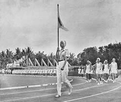 IN our Athletics Competitions we introduce each season some innovation which we expect will tend to improve the standard. This season we established certain minimum performances to which all competitors above the age of 16 had to conform before they could be allowed for an event. This necessarily reduced the number of entries but made each event more interesting. Our members, however, still have to get used to these restrictions and next year we will raise still more the standard of these minima to arrive at still better performances. As a result of the fewer entries, our programme was of shorter duration but in this we were fortunate because we had an unusually wet season and on many occasions the day's programme had either to be postponed entirely or to be much curtailed. But we were able to complete the programme within the scheduled time and even had a few days to spare at the end. This was largely due to the excellent way the track stood up to the heavy rains, assisted by the very good work of the ground staff. The standard of performance showed much improvement and a large number of our records were broken. The following analysis will show this very clearly: 1) number of item group records broken 103 out of 197. 2) number of group records broken, 49 out of 123. 3) number of J.S.A.S.A. records broken 14 out of 37. We have given elsewhere in this issue the programme of the competitions and we have included many photographs of the, various events. The quarterly exhibition this year on the i5th August was ! held at Golconde instead of at the University Library. It was an exhibition on Japan and consisted almost wholly of articles from Japan which the Mother had Herself used there and brought with Her in 1920. The arrangement of the exhibition was in four |