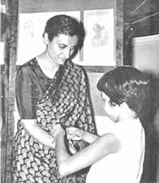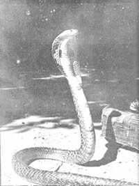 the Playground where he heard the Jana Gana Mana sung by our choir. But his daughter, Indira Gandhi, was able to spend much more time with us and to have an interview with the Mother. We publish in this number pictures of Indira visiting various places in the Ashram like Golconde etc., and of a young child tying on her wrist a garland of tiny roses. There is also a picture of the group at the Playground of the Mother with the Prime Minister, Srimati Indira Gandhi, Mr. Kamaraj Nadar the Chief Minister of Madras, and the Union Minister Sri Lal Bahadur Shastri. We end our illustrations with a fine picture of the Cobra, the King of all snakes, which has an auspicious significance in Indian tradition. |