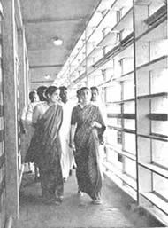 separate rooms. The first showing "The Country", the second "Art and Culture", the third the comparison between the old (1915) and the new (1955), and the fourth "Home Life". In setting up the exhibition we had the assistance of recent Japanese members who were also in attendance each day in their national costume. They had, in addition, prepared a Japanese garden in the Golconde grounds and a number of Bonzai or dwarf trees which is so typical of Japanese horticultural art. It was a very successful exhibition and attracted many visitors not only from the Ashram but from the town as well, There was another exhibition which coincided with the one on Japan. It was the First Pondicherry International Salon of Photography sponsored by Ashram Photography and held in a large hall which we had specially prepared for the purpose. This first venture has met with unqualified success. Entries were from 35 different countries and totalled over a thousand. In the selections for exhibition contents value was given an additional consideration apart from pictorialism and artistic execution. Of the three awards, one went to Hong Kong, one to the U.S.A. and one to India. The exhibits were well hung and the lighting was excellent. There was a large number of visitors during the eight days of the exhibition. For the evening of the i5th August we had arranged a programme of entertainment but this was marred by heavy rain. We managed to go through the programme however, the principal feature of which was the Spring Dance. We were also treated to an explanation with demonstrations of the Japanese art of self-defence by a visiting Japanese expert. He explained the difference between Aiki which is purely used for self-defence and which can be practised by anybody, and the art of Judo which is a more formal affair, controlled by definite rules, and which requires a certain physical strength and quick movement. It was a highly instructive show and much appreciated by all present. A noteworthy event this quarter was the second visit of the Prime Minister, Pandit Jawaharlal Nehru, to Pondicherry. His visit was only for a few hours and he had a very full programme yet he managed to find a few minutes to pay an informal visit to |