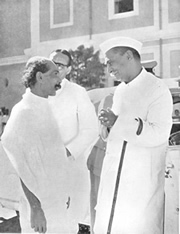 FROM the very first day of the quarter the programme of — training and preparation for the gymnastic display on the 2nd of December commenced in full earnest. Plans for this were prepared during the athletic season. But the practice for the mass drill started long before, as it was intended to have a much larger number than usual take part in the event. On the 24th November we had, as usual, our exhibition in our University Library. This time the subject was the same as that which was being prepared for the 1st December, the Spiritual Destiny of India. The 1st December programme was personally directed by the Mother Herself. Preparations had to be made for a subject which had such a wide scope—The Spiritual Destiny of India from the very commencement of Creation, the descent of the Light, the appearance of the Gods of the Trinity—Brahma, Vishnu, and Shiva—the times of Krishna and Rama through the days of the Buddha, Shankara and Chaitanya, the impress of the various foreign influences, and through Ramakrishna and Vivekananda up to the final culmination in Sri Aurobindo. Scenes of the various epochs were played with either the corresponding decor or, more often, with illuminated scenes projected on a background screen. This system was Very effective and fine results were obtained. Unfortunately the programme was upset by heavy rains and there had to be a postponement from the 1st and 2nd to the 3rd and 4th December. Even then, the programme on the 3rd was played in continuous rain, but a full audience sat through it all and enjoyed the show to the end. Because many people missed the programme on account of the rain, it was repeated on the II th December. The full piece with English and French translations |