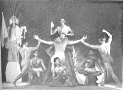 Roy; the well-known body builder who had been elected as Mr. Universe, Class III in 1951. He treated us to a series of poses in which he displayed his beautifully proportioned and well-developed body with much artistry. He also arranged some tableux with our own body-builders. Pictures of Sri Manotosh Roy and of the tableaux appear in this number.