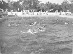 The water for the pool is obtained from two artesan wells, The water is alum treated for coagulation, then filtered through two sand gravel beds and finally treated with copper sulphate and chlorine before going into the pool. An arrangement for aeration of the water is now being made to give it more sparkle, About a quarter of the pool will be drawn off every day for irrigation and fresh water pumped in. There will also be a re-circulation of existing water and we propose later a pressure re-filtration plant.