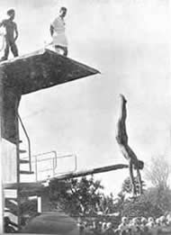 de 1 et 3 mètres, et une plateforme à 5 mètres. Une cabine sous-marine avec des fenêtres de verre a été construite dans le bassin de plongée pour servir aux photographes. Un éclairage sous-marin a été disposé tout au long de la piscine.