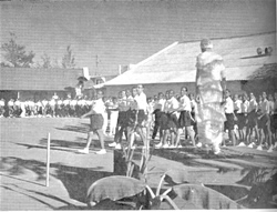 THIS time we have, at last, been obliged to complete our Games tournaments in one Quarter as in the next we will have our Combatives and Aquatics. So there was a rush to finish before the Prize Distribution day on the 1st March, but we made it in time. The Games were played with the usual enthusiasm. An added interest was the facility of a new playground. This is a full sized field for football, and this has been very welcome to us. Our boys had a hand in preparing the field and getting it into shape. In this quarter, we had the visit of a troupe of body builders led by Shri Kamal Bhandari who had won the Bharat Shree Title (Mr. India). He gave an exhibition with Shri Shanti Chakravarthy who had won the Mr. India—2nd Group Title, and Shri Hiten Roy. The greatest event of the Quarter was of course, the Mother's Birthday on the 21 st February. This was the 8oth anniversary and there were special celebrations not only here, but in all our Centres in India and abroad. Here, the celebrations had to be spread over two days, the 20th and 21st. On the 20th, the Mother went to the University Theatre in the evening where first She read out a message specially prepared for the All India Radio. This message was later broadcast, together with a commentary on the celebrations on the All India Radio network in Tamil and in English. The message is of special interest to us and so is published elsewhere in this issue. After reading the message, the Mother went around the Flower Show which had been arranged in the large grounds of the Theatre. Thousands of potted flower and leaf plants had been collected for the occasion and were tastefully arranged in |