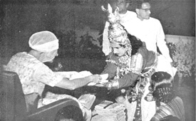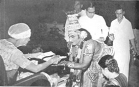 VII Les danseurs de Kathakali, Shri Gopinath et sa troupe, recevant des souvenirs de la Mère