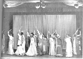 Kathakali dancers, Shri Gopinath and his party, receiving souvenirs from the Mother VIII Danse Garba par des jeunes filles de l'Ashram