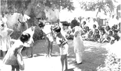 Infants de l'Ecole au jeu VI Competitors rceiving 'Prasad'